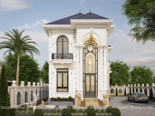 Biệt thự mang đậm phong cách tân cổ điển (Neo-Classical), thể hiện sự sang trọng, bề thế và quyền uy. Đây là phong cách thường được giới thượng lưu ưa chuộng nhờ sự kết hợp hài hòa giữa cổ điển phương Tây và đường nét hiện đại.